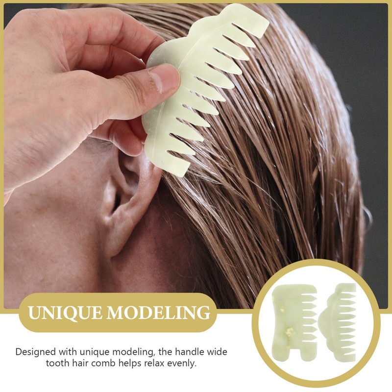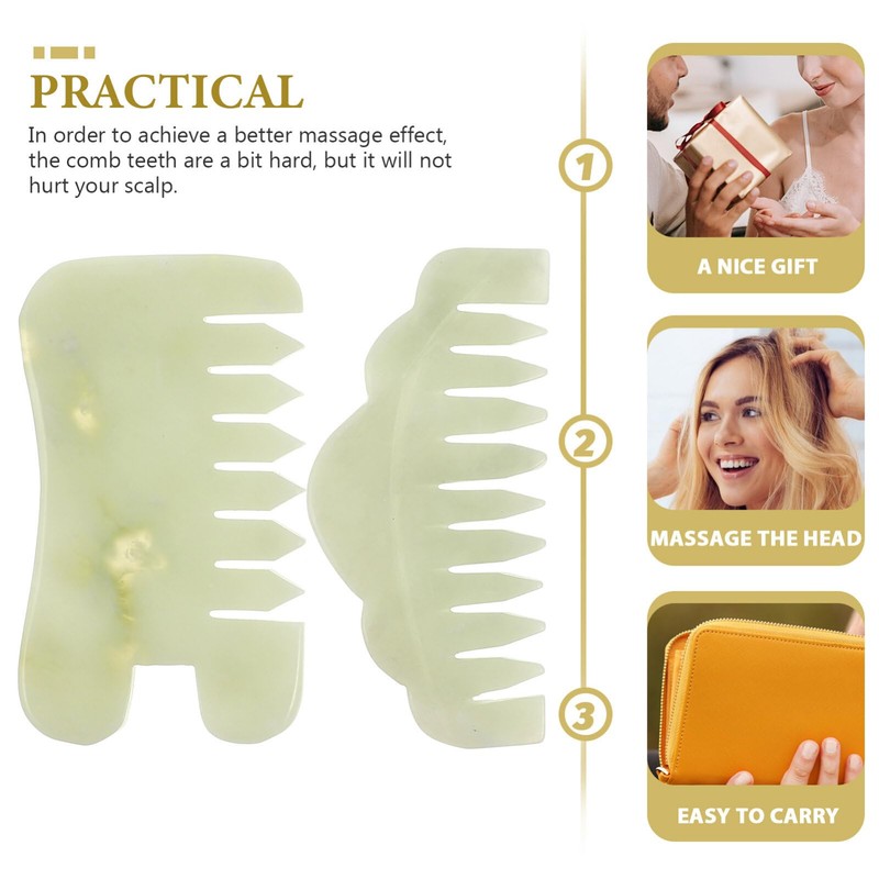 Healifty Jade Stone Massage Comb 2 Pieces - Guasha Scalp Comb Portable Gua Sha Scraping Massage Tool for Head Care (Green)