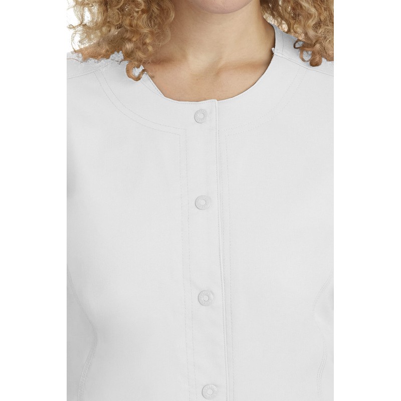 - SNAP FRONT CLOSURE - The Scrub Jacket has a snap front design that allows for quick on-and-off while providing a secure closure that stands up to frequent washing without losing function or form.