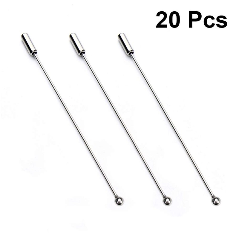 HEALLILY 20pcs Brooch Pin Stick Metal Safety Pins Suit Lapel Pin Stick with Stopper Ends DIY Jewelry Accessories Tie Hat Scarf Silver