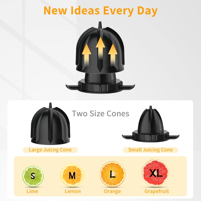 - The Perfect Squeeze for Every FruitWith an upgraded aluminum die-casting handle, two different sizes of juicing head, and new pressing technology, this juicer can handle all types of citrus fruit and improve juice yield.