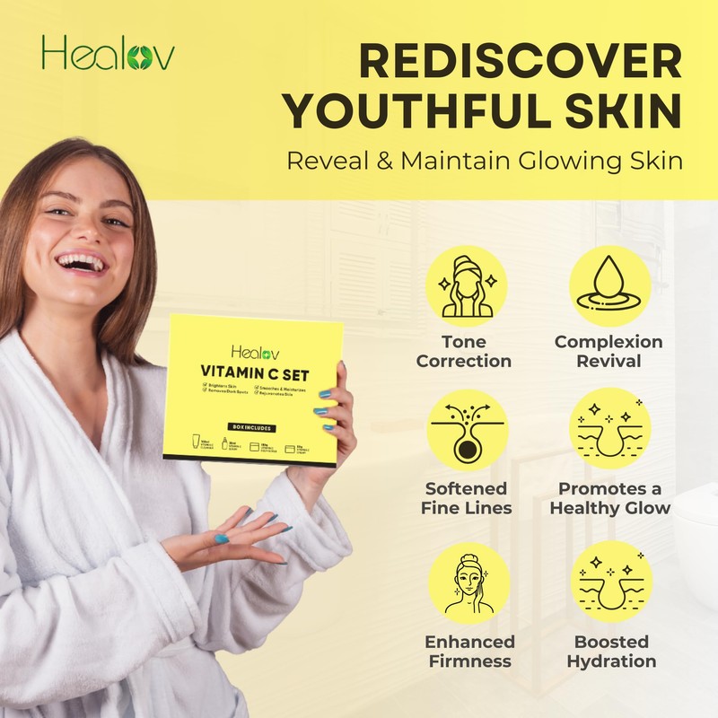 - MAKES A TERRIFIC GIFT IDEA: Containing four full-size vitamin C skincare products, this head-to-toe skincare set makes a fabulous gift for yourself or someone else. Give the gift of brighter, more beautiful skin with Healov!