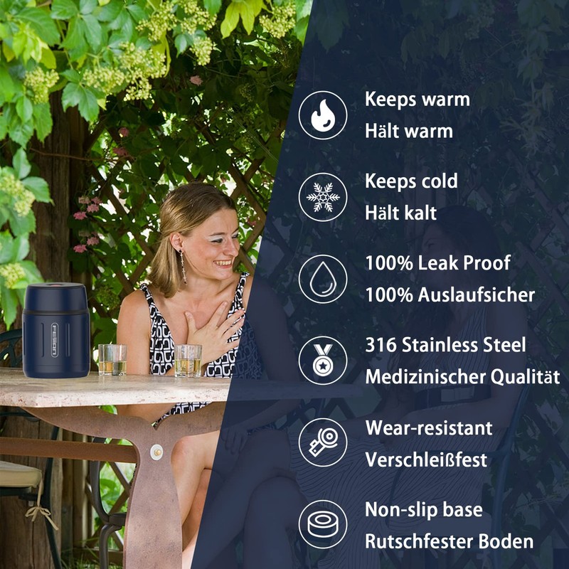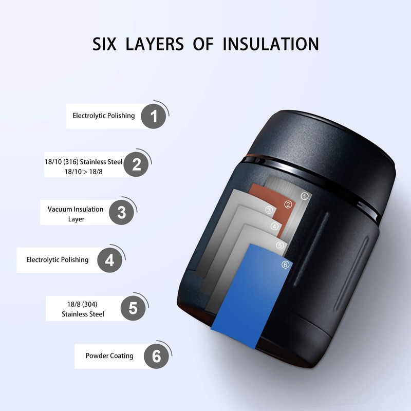 - 100% safe for you – the inner wall made of high-quality SUS316 stainless steel, which is BPA-free, FDA approved, instead of normal 304 stainless steel used in a cheap bottle, is more human-friendly and helps you enjoy a healthy lunch, also a durable reusable container helps you reduce packaging waste.