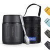 Healter 500 ml Thermal Container for Food, Leak-Proof Stainless Steel Food Container, Stainless Steel Soup Container with Foldable Spoon for Food, Soup, Porridge, Fruit, Black