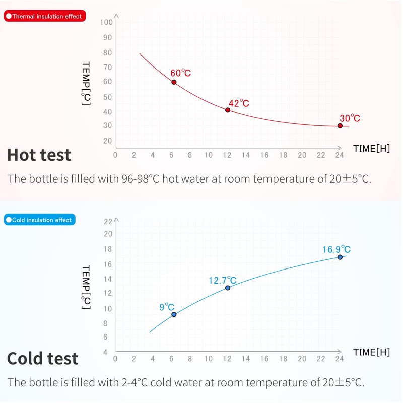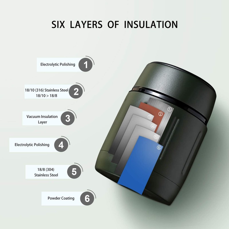 - KEEP HOT UP TO 12 HOURS- Double wall vacuum design at the highest level. With additional insulating bag for extra insulation, could keep hot up to 12 hours or keep cold up to 24 hours. For maximum thermal efficiency, we suggest you pour in hot & cold water to preheat & pre-chill for 5~10 minutes before packing food.