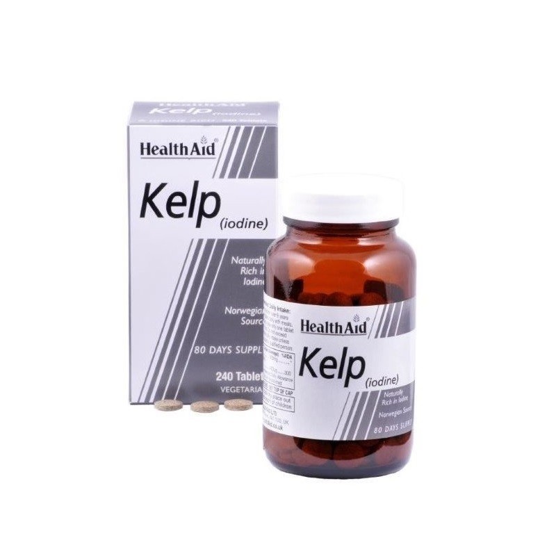 HealthAid Kelp is a special Norwegian oceanic plant source, which naturally provides amino acids, vitamins, minerals and trace elements. Kelp is especially rich in Iodine, essential for the synthesis of thyroid hormones, the proper functioning of the thyroid gland and the maintenance of various other important bodily processes. Iodine is vital for good thyroid function and in turn is essential for good health.