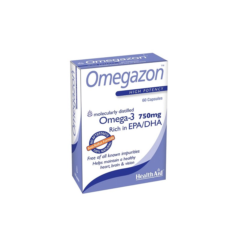Omegazon Capsules are specially formulated using Norwegian fish oil to give a highly concentrated source of Omega-3 Polyunsaturates, EPA and DHA in their free from for improved digestibility, assimilation and efficacy. A two-step molecular distillation process is used to give a purer fish oil virtually free of all known impurities such as dioxins, dioxin like PCB’s, furans, mercury and lead which are commonly found in fish. A valuable supplement to contribute to the maintenance of circulation, improve general well-being (heart, skin, joints) and brain function. Health Aid Omegazon offers the benefit of having an anti-reflux formula which helps eliminate the unpleasant odour and aftertaste associated with fish oil supplements.