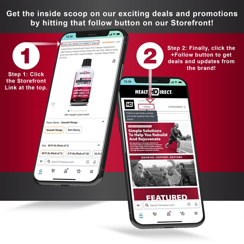 HEALTH DIRECT Health Direct AminoSculpt Sugar-Free Collagen Supplement - High Potency Medical-Grade Protein for Hair, Skin, Nails & Joints, Grass-Fed, Non-GMO, Liquid Collagen - Smooth Mango - 15 Fl Oz