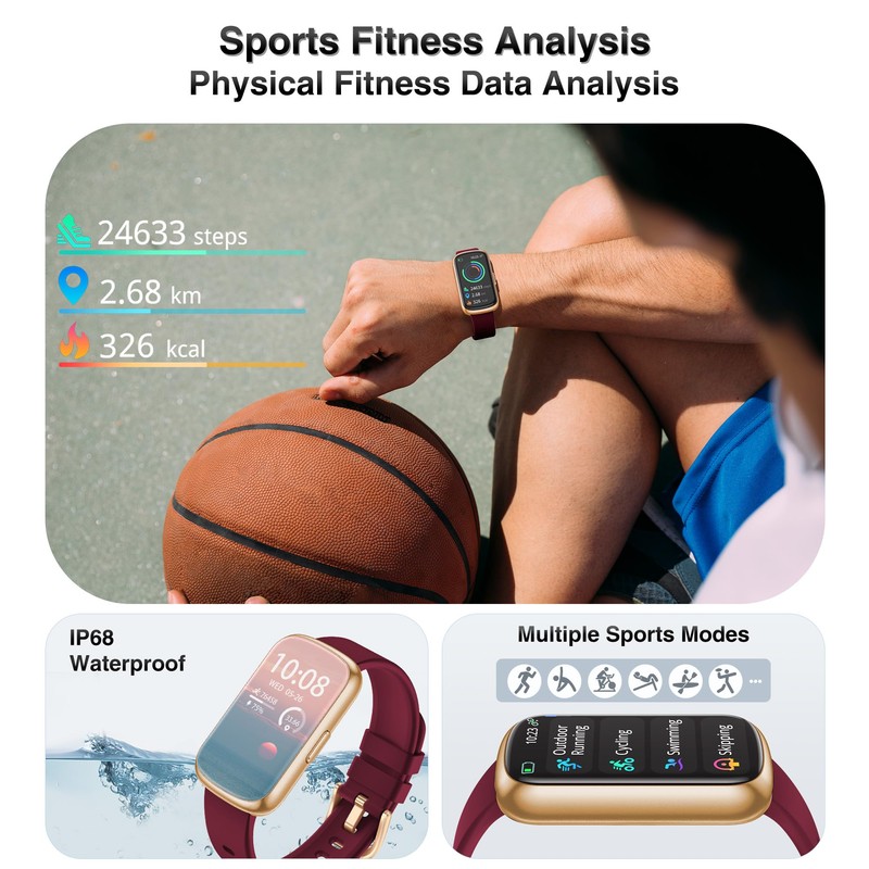 - đâăMultiple Sports Modes & Activity MonitoringăThis smartwatch offers a wide range of sports modes, including running, swimming, basketball, football, and more, covering all your favorite activities. As your perfect workout partner, it accurately tracks calories burned, steps taken, distance traveled, and real-time speed. Set personalized fitness goals to boost your workouts and achieve better results more efficiently.