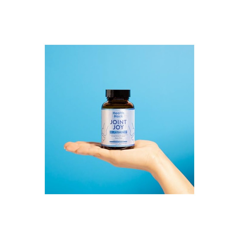 🌟 ⭐ Health Hack Joint Joy Platinum | Apoya la Salud de Articulaciones y Huesos | Con Sulfato de Glucosamina, Colágeno Hidrolizado, Omega 3, Biotina y Ácido Hialurónico | Suplemento para Rodillas y Movilidad ⭐ 🌟