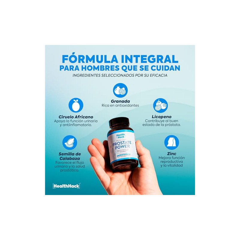Health Hack - Health Hack Prostate Power | Suplemento Avanzado para la Salud de la Próstata | Fórmula Natural con Semilla de Calabaza, Ciruelo Africano, Granada, Licopeno, Zinc y Vitamina D. 🏆 Reconocido por su excelente relación calidad-precio. Materiales de alta gama y acabados premium. 🎯 Producto más buscado del mes. Ideal para quienes buscan lo mejor en calidad y estilo. Producto auténtico con satisfacción total asegurada. ¡No te quedes sin el tuyo y aprovecha esta oportunidad única!