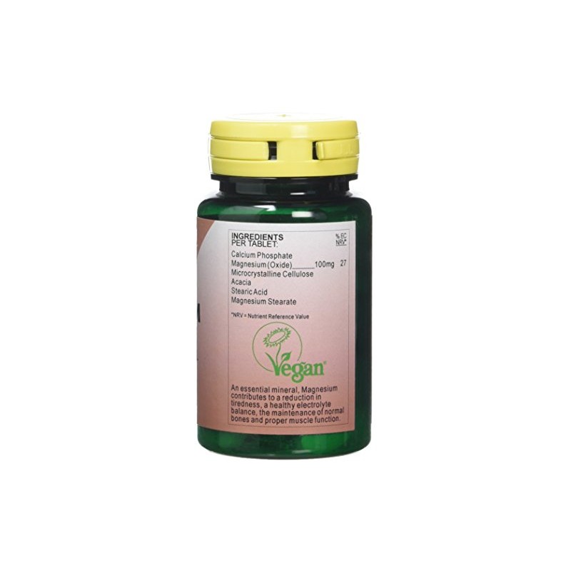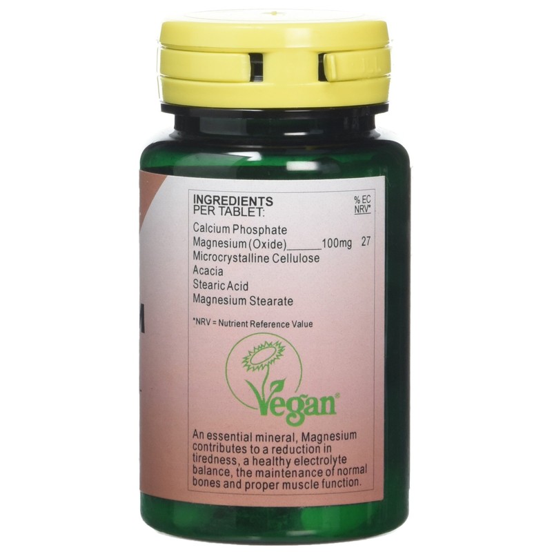 - 100mg Magnesium from a highly bio-available Oxide source, for normal muscle function, the production of ATP for energy and so a reduction of tiredness and fatigue