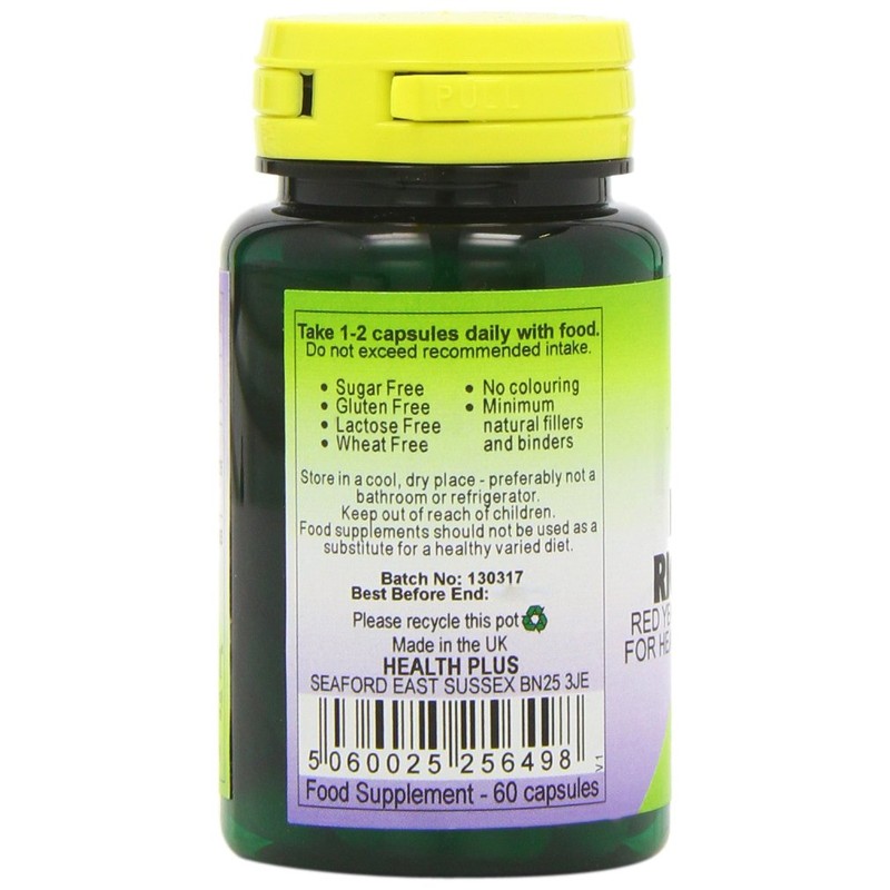 Health Plus Red Yeast Rice Complex Heart Health and Cholesterol Lowering Supplement - Pack of 60 Gelatin Free Capsules