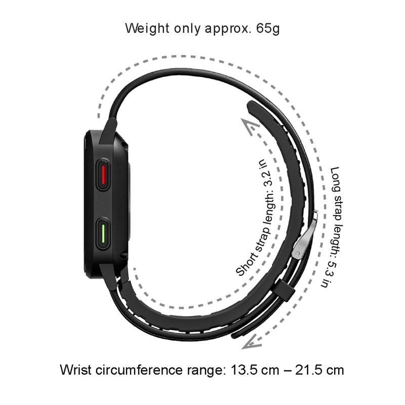 • Touch Screen. Large display size 1.39" x 1.15". Applicable wrist circumference: 5.3" x 8.5"
