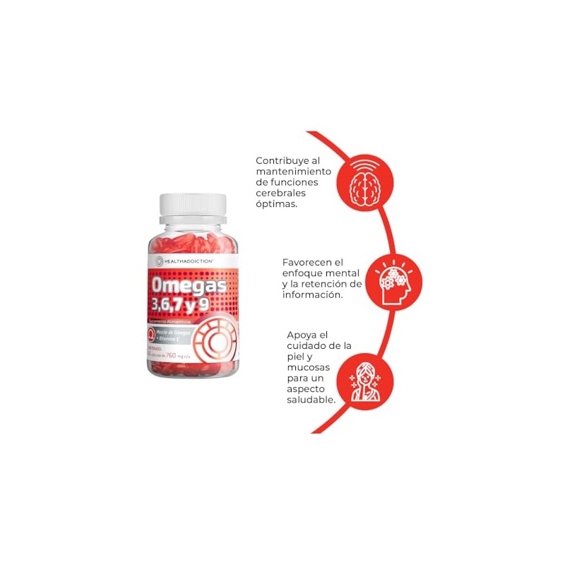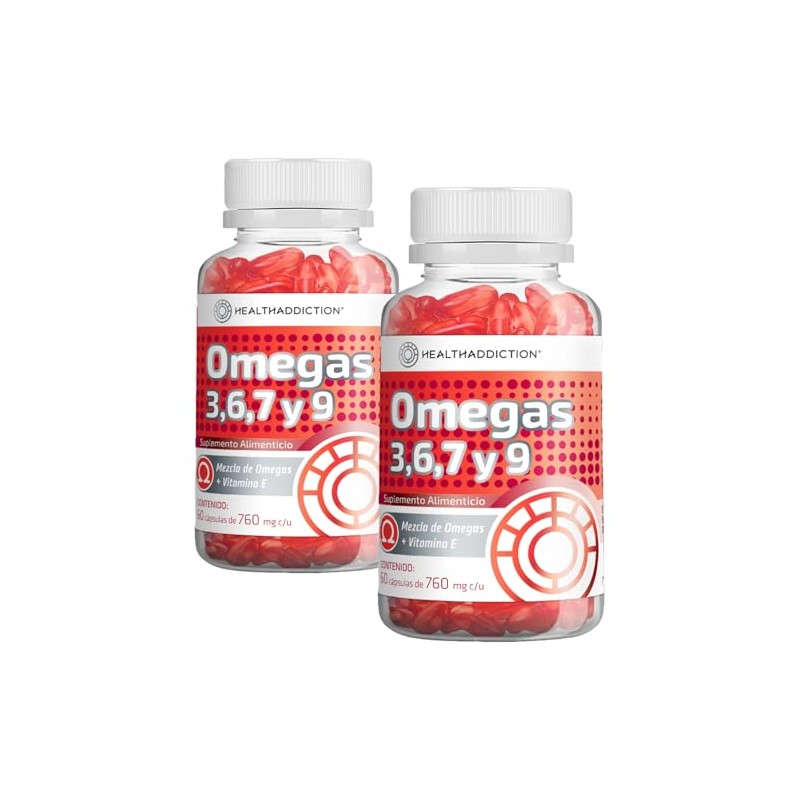 HEALTHADDICTION - 2 Pack Suplemento Omega 3, 6, 7 y 9 con Aceite de Pescado, Linaza, Oliva y Vitamina E 120-120 Cpsulas de 760mg cu