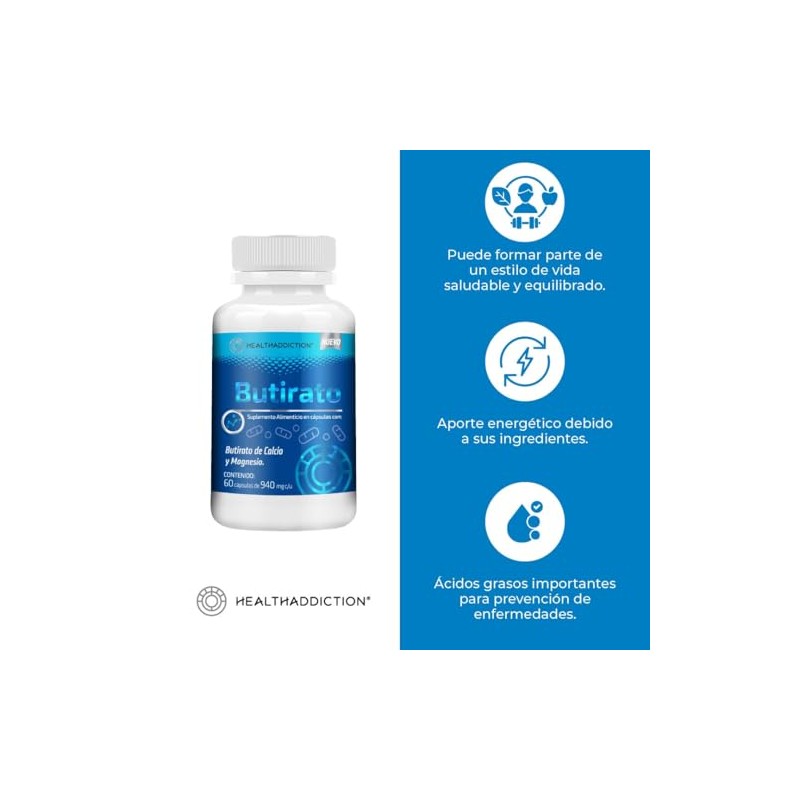 HealthAddiction - HEALTHADDICTION - Butirato Calcio Magnesio | Con MCT y Extracto de Romero | Suplemento Alimenticio para Bienestar Digestivo y Metabólico | 60 Cápsulas. 💯 Autenticidad y máxima durabilidad comprobadas. Materiales de alta gama y acabados premium. 💎 Calidad superior certificada. Ideal para quienes buscan lo mejor en calidad y estilo. Producto auténtico con satisfacción total asegurada. ¡No te quedes sin el tuyo y aprovecha esta oportunidad única!