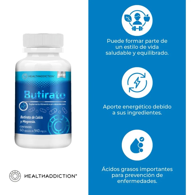 HEALTHADDICTION - Butirato Calcio Magnesio Con MCT y Extracto de Romero Suplemento Alimenticio para Bienestar Digestivo y Metablico 60 Cpsulas