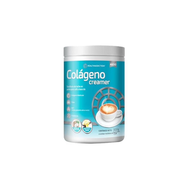 HEALTHADDICTION - Colágeno Creamer con Prebióticos, MCT Oil y Leche de Coco, Sustituto de Leche para Café con Sabor a Vainilla - Sin Gluten, Sin Lactosa y Sin Azúcar - Fórmula de 300g