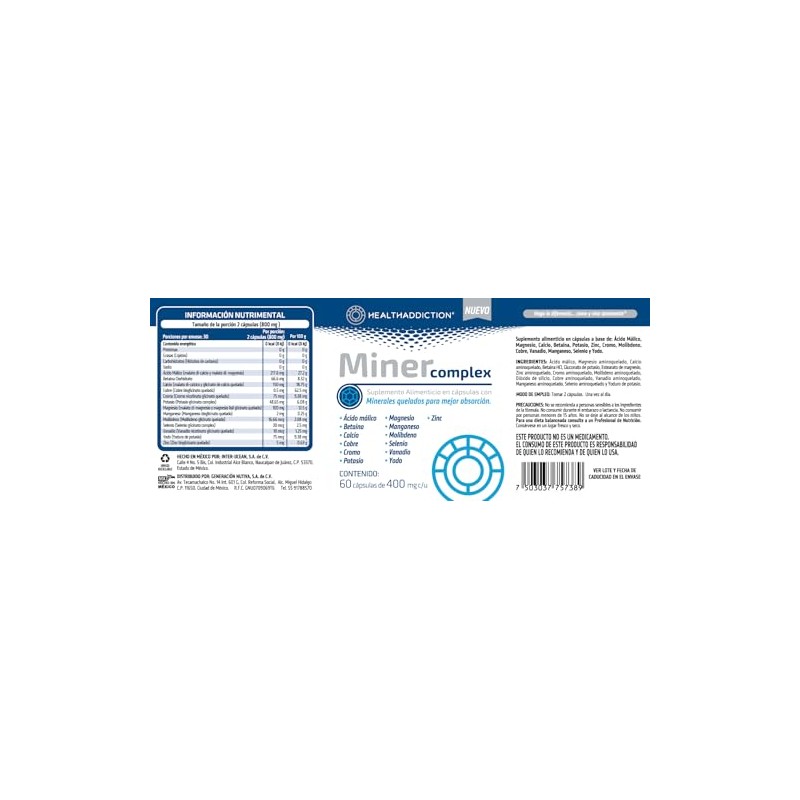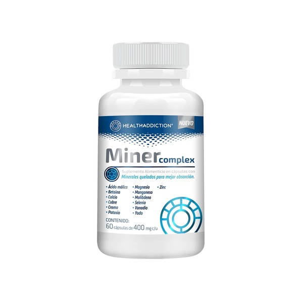 HEALTHADDICTION - Miner Complex - Suplemento Multimineral de Minerales Quelados con Magnesio, Zinc, Manganeso, Potasio - 60 Cpsulas