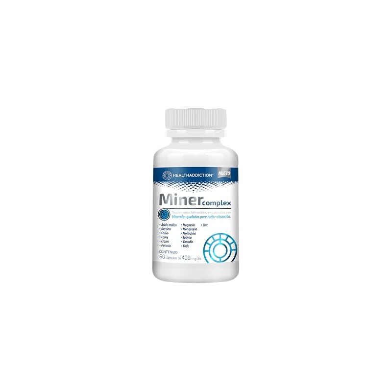 🌟 ⭐ HEALTHADDICTION - Miner Complex - Suplemento Multimineral de Minerales Quelados con Magnesio, Zinc, Manganeso, Potasio - 60 Cápsulas ⭐ 🌟