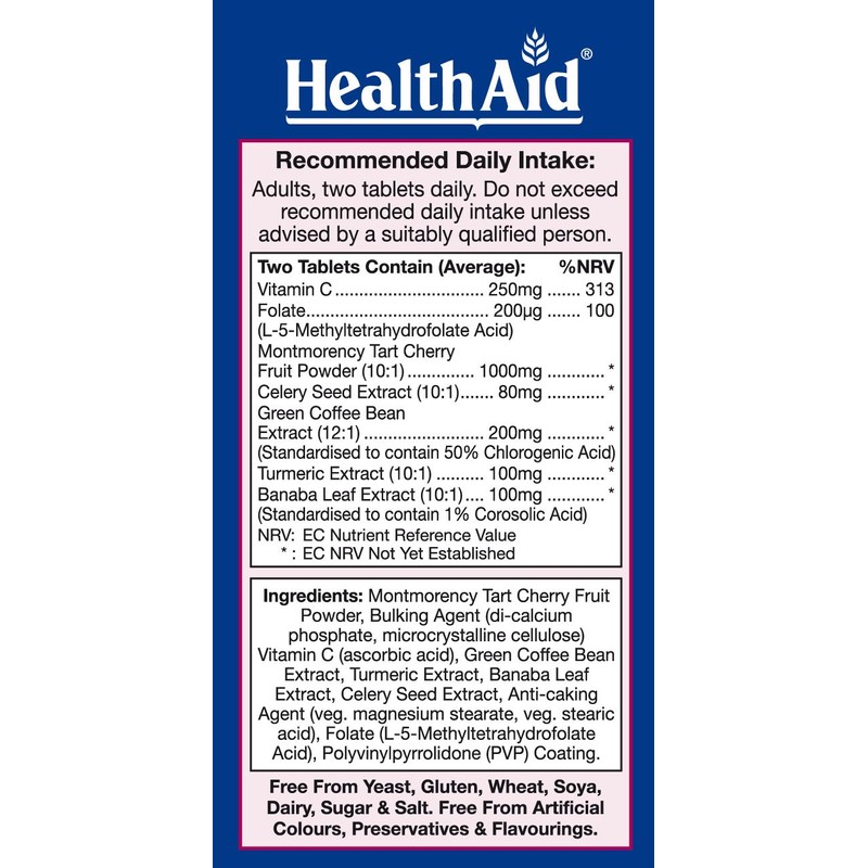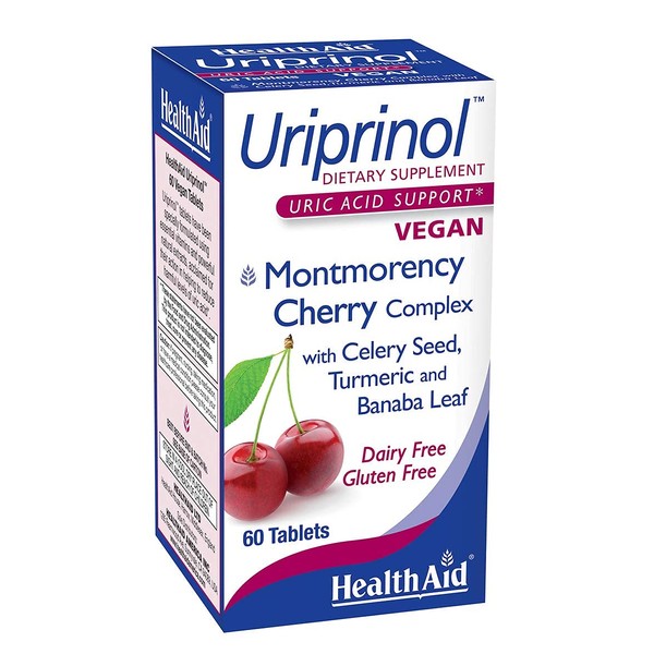 HealthAid Uriprinol®, Uric Acid Cleanse, 60ct, Twice Daily, Montmorency Cherry Complex with Celery Seed, Turmeric and Banaba Leaf, Vegan