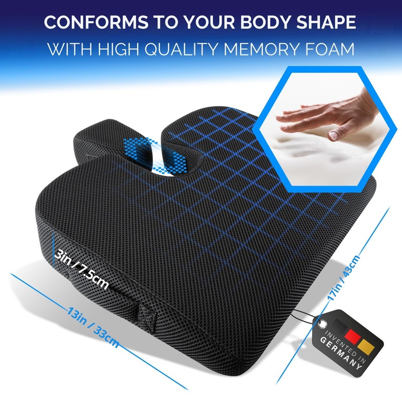 - ORTHOPEDICALLY RECOMMENDED – Our orthopedic cushion helps align the spine, reduces pressure on the coccyx, and supports tailbone pain relief. Ideal as a sciatica seat cushion, coccyx pillow, or seat cushion for hip pain.