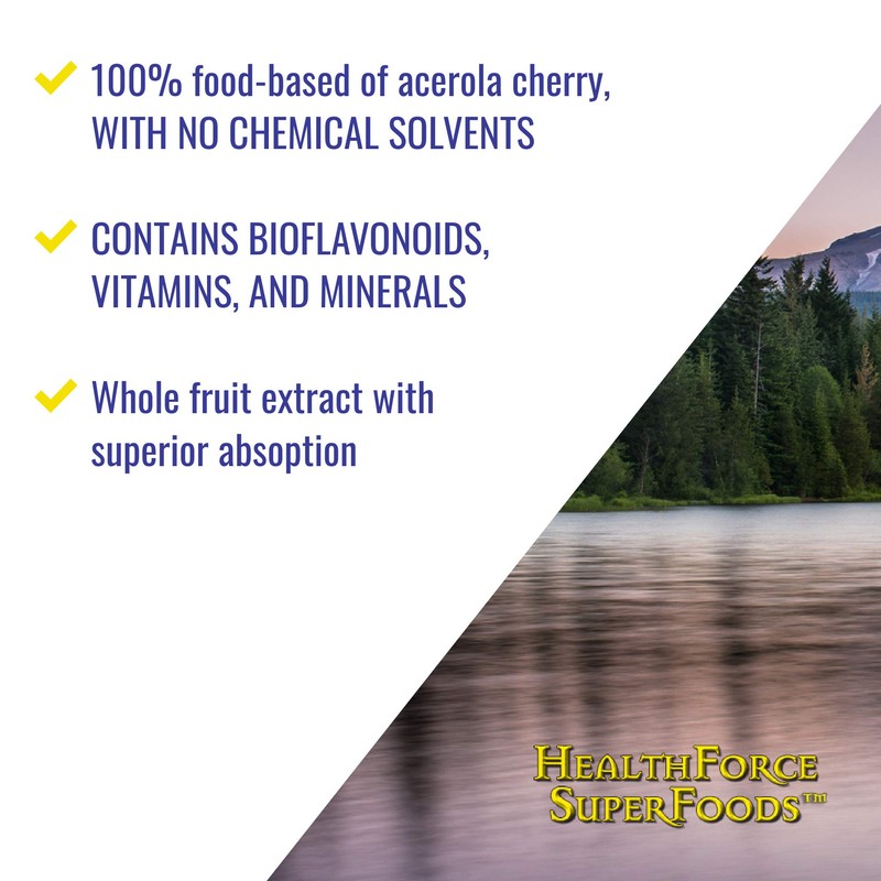 HEALTHFORCE SUPERFOODS Truly Natural Vitamin C - 240 VeganCaps (Pack of 1) - Whole Food Vitamin C from Acerola Cherry Powder & Camu Camu Fruit - Immune Support - Vegan, Gluten-Free - 30 Servings