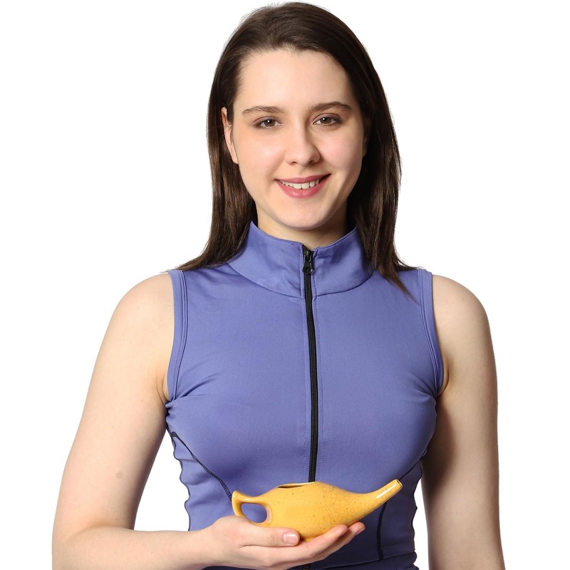 Neti kriya or jala neti is an ancient Ayurveda technique used to cleanse the nasal tract of any impurities. For ages, yogis have practiced this technique for the innumerable, potent benefits. In the present day too, people all over the world use this excellent technique to achieve dramatic health results especially with those suffering from nasal tract health issues such as sinus. Regular practice of neti kriya is proven to reduce the effect of sinus and allergies without any side effects. Our crackle pattern orange ceramic neti pot for nasal cleansing is a compact and travel-friendly option for people on the go. As compared to plastic neti-pots, these are much more sturdy and durable options and will last you for a very long time.