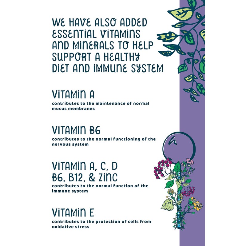 - KIDS IMMUNE SUPPORT - Vitamins A, B6, B12, C, D, E and Zinc have been added to help support a healthy diet and immune system.