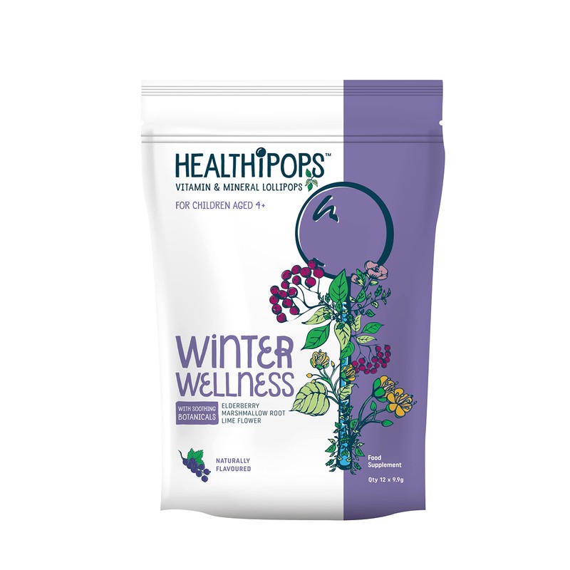Healthipops Vitamin & Mineral Lollipops WINTER WELLNESS with added soothing botanicals; Elderberry, Marshmallow Root & Lime Flower | Aged 4+ | 12 lollipops