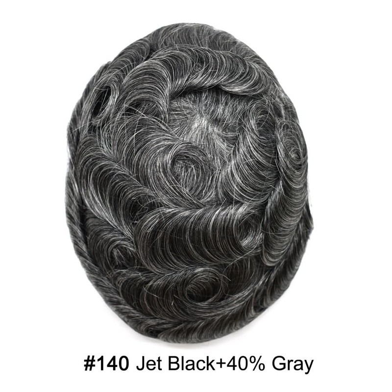 Healthlif Ultra Thin Skin Mens Toupee Human Hair Replacement System For Men Toupee For Men Hair System Poly Hair Pieces For Men 0.04mm V-Loop 8x10 100% light to Medium density#140 1# JET BLACK+40%GREY