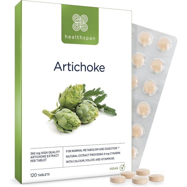 • WHY CHOOSE HEALTHSPAN'S ARTICHOKE? Healthspan's product contains 360 mg natural artichoke extract, which guarantees a minimum of 7.2 mg cynarin per tablet. They’ve also added calcium, to help support your digestion and the digestive enzymes in your stomach, plus vitamin B6 and folate to support normal energy-yielding and amino acid metabolism.