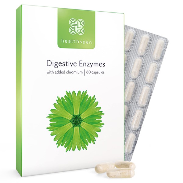 - WHY CHOOSE HEALTHSPAN? An expertly formulated blend of enzymes - including amylase, bromelain, lactase, lipase and protease - to aid the digestion of carbohydrates, lactose, fats and proteins. Healthspan have added chromium, which contributes to normal macronutrient metabolism.