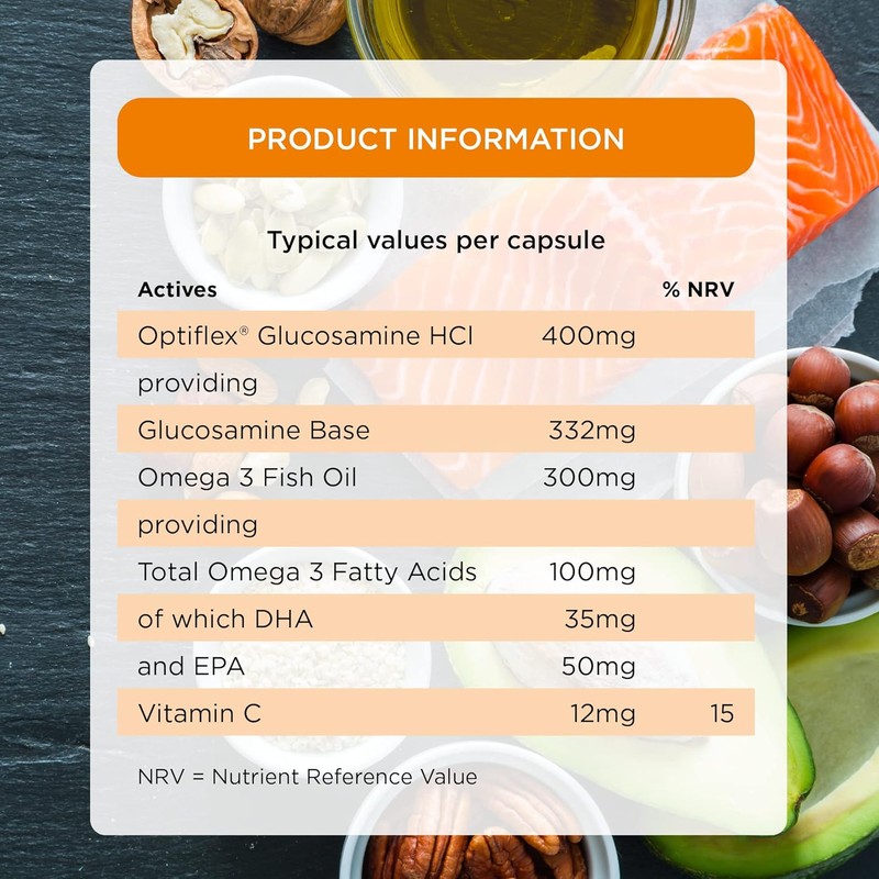 Healthspan Glucosamine & Omega 3 – 120 Capsules | Joint Health Support with 400mg Optiflex® Glucosamine HCl & 300mg Omega 3 Fish Oil | With Added Vitamin C for Collagen Formation | Highly Purified & Sustainably Sourced