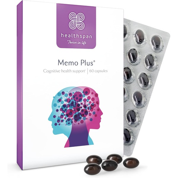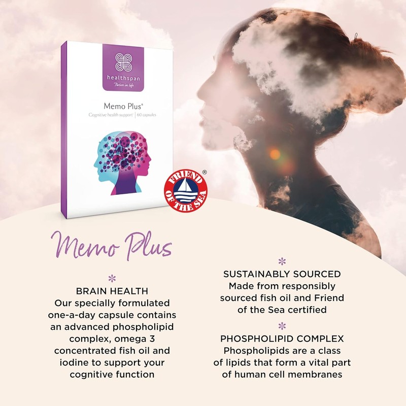 Healthspan Memo Plus – 2 Months’ Supply | Advanced Brain & Cognitive Support Supplement | 350mg Phospholipid Complex + 179mg Omega-3 Fish Oil + 75µg Iodine | One-a-Day Formula | Friend of the Sea Certified