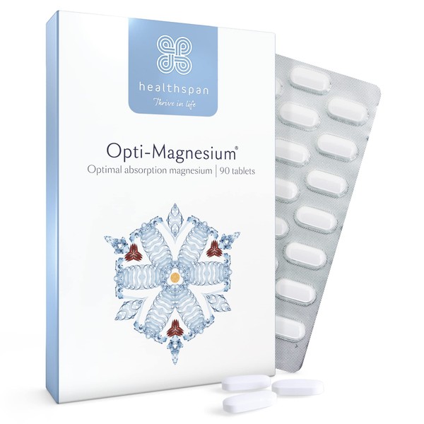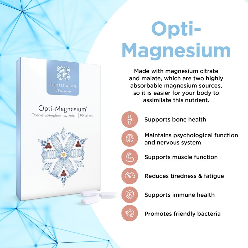 Healthspan Opti-Magnesium | 90 Tablets | for Bone & Muscle Support | Maintains Psychological Function and Nervous System | Easily Absorbed | Added Vitamin D3 | Inulin | Vegetarian