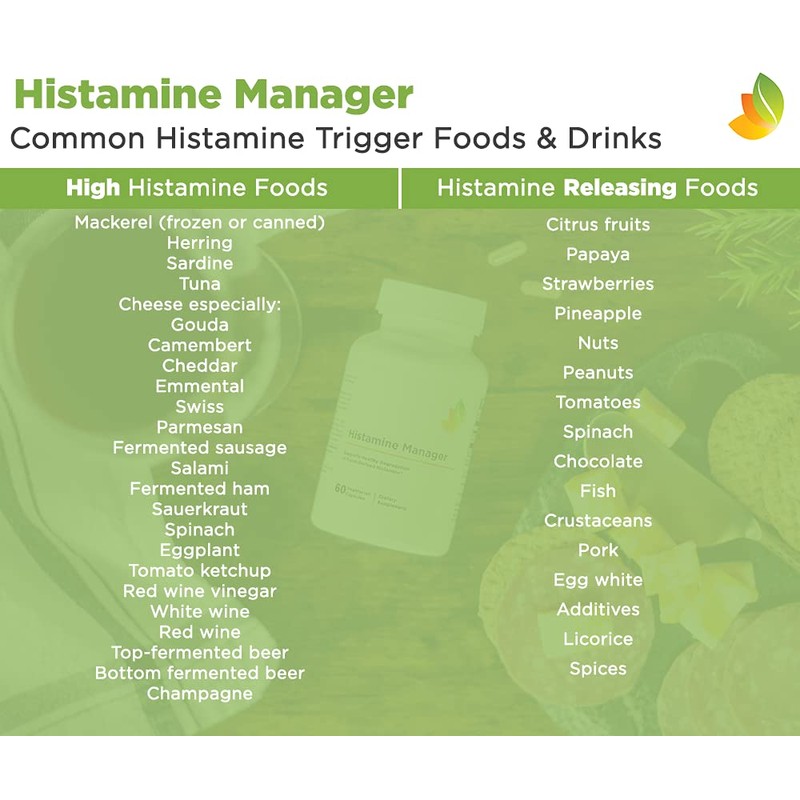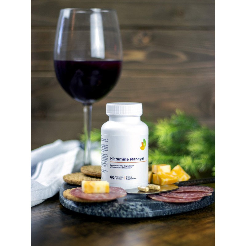 - Eat and drink with ease and confidence. Histamine Manager allows you to enjoy histamine-releasing foods and -more especially- red wine. If you are sensitive to histamine, you know that red wine contains histamine, liberates histamine, and blocks the action of DAO. If you want to avoid a histamine reaction, headache, or allergy-like reaction, take 1-2 capsules up to 15 minutes before you eat a meal, snack or drink alcohol.
