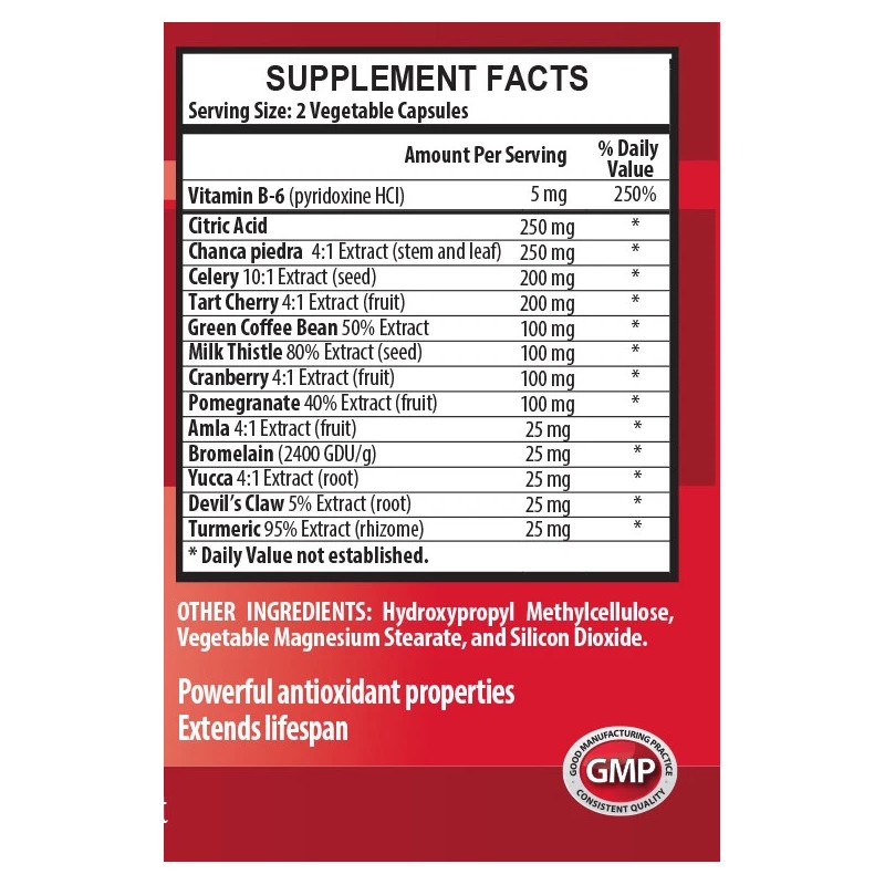 Healthy kidney function - URIC ACID SUPPORT - natural pain management 2Bot 120Ca