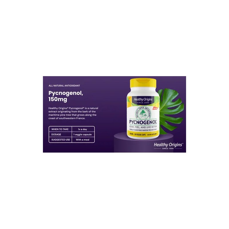 Healthy Origins Pycnogenol - 150 Mg - 30 Vegetarian Capsules Procedente De Francia, El Pycnogenol Es Un Extracto De Corteza De Pino Que Apoya El Cuidado De La Piel, La Producción De Colágeno.