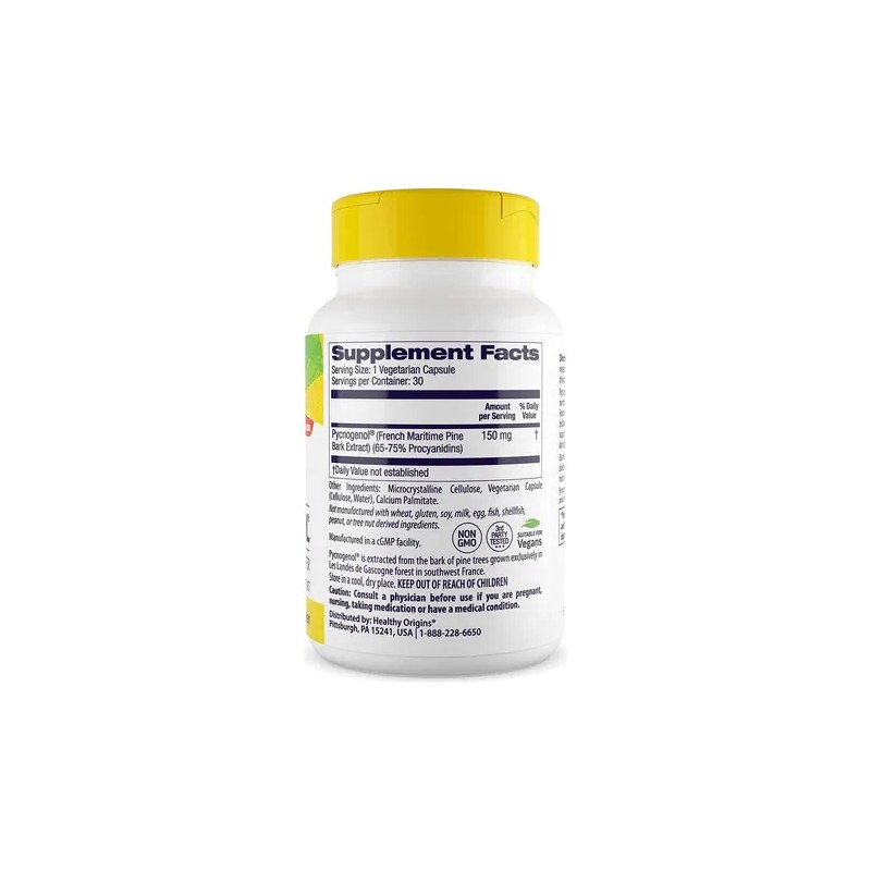 Título: Healthy Origins Pycnogenol - 150 Mg - 30 Vegetarian Capsules Procedente De Francia, El Pycnogenol Es Un Extracto De Corteza De Pino Que Apoya El Cuidado De La Piel, La Producción De Colágeno.