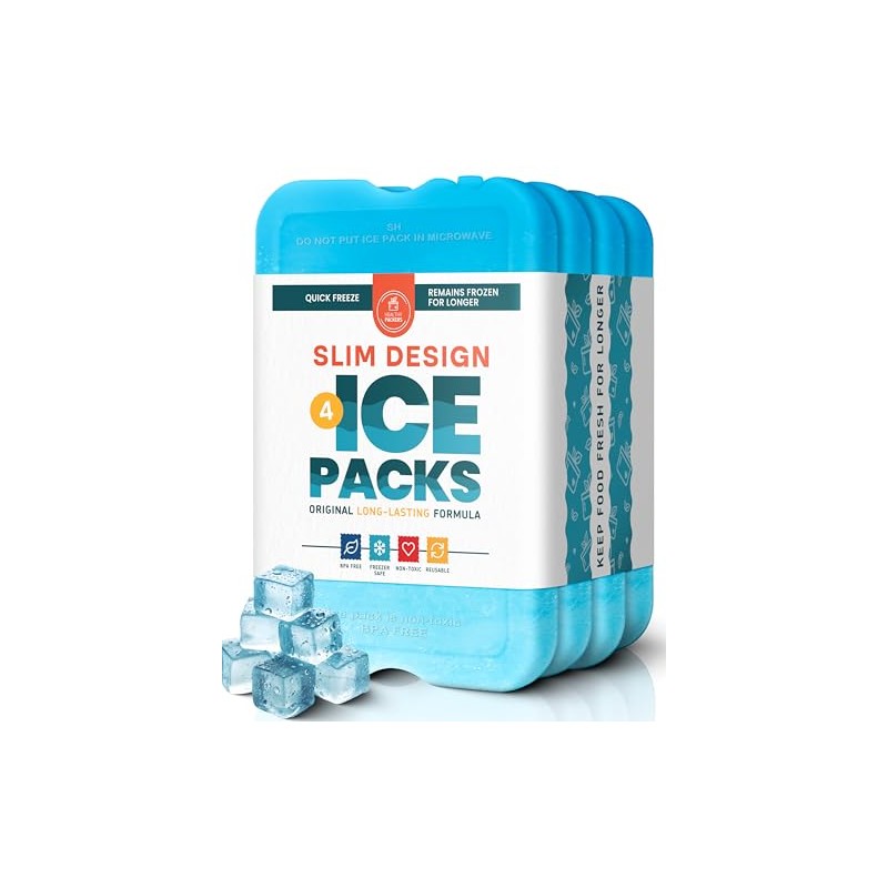 - Delgado, ligero y duradero: juego de 4 paquetes de hielo de gel duro delgados, reutilizables y versátiles para enfriar. Cada bolsa de hielo mide 7 x 4.7 x 0.5 pulgadas. Mantén tu bolsa térmica aislada fría durante más tiempo