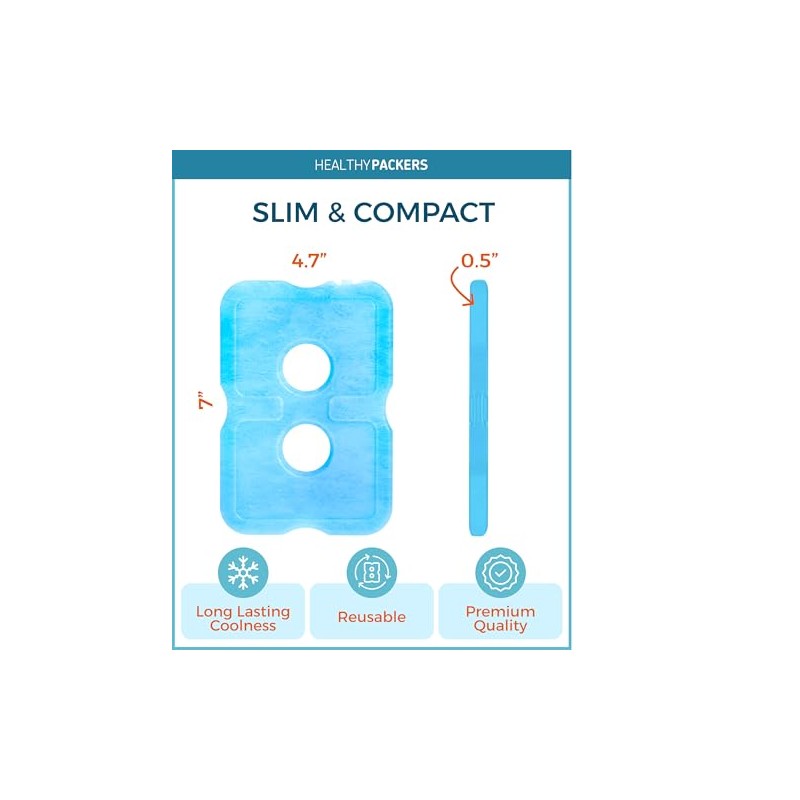 Healthy Packers Ice Packs for Lunch Boxes & Coolers - Freezer Packs - Original Cool Pack | Cooler Accessories for Beach, Camping & Fishing | Slim & Long-Lasting Reusable Ice Pack for Cooler