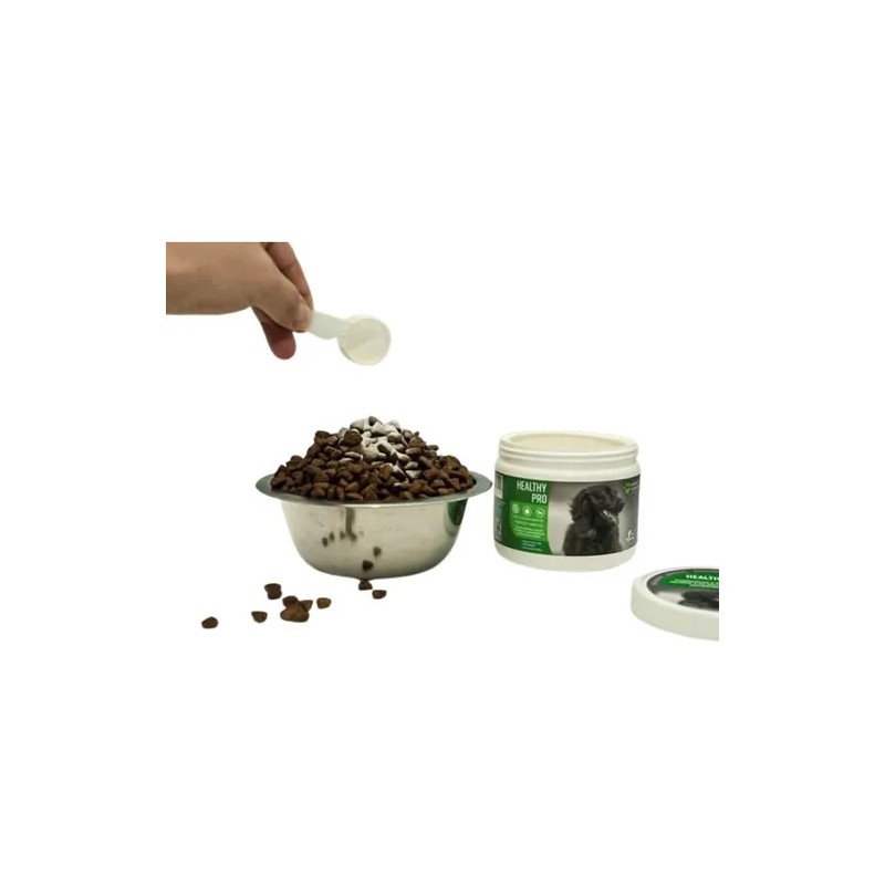 'Healthy Pro, Probióticos Y Prebióticos 290 G. Petmet Natural' es un complemento alimenticio simbiótico en polvo que contiene probióticos y prebióticos que contribuyen a la buena condición de tu perro, necesaria para una nutrición adecuada.
