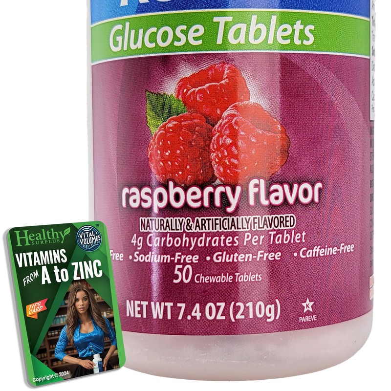 Healthy Surplus Glucose Tablets - 50 Chewable Tablets and Vital Volume Tips Card (50 Tablets, Raspberry)