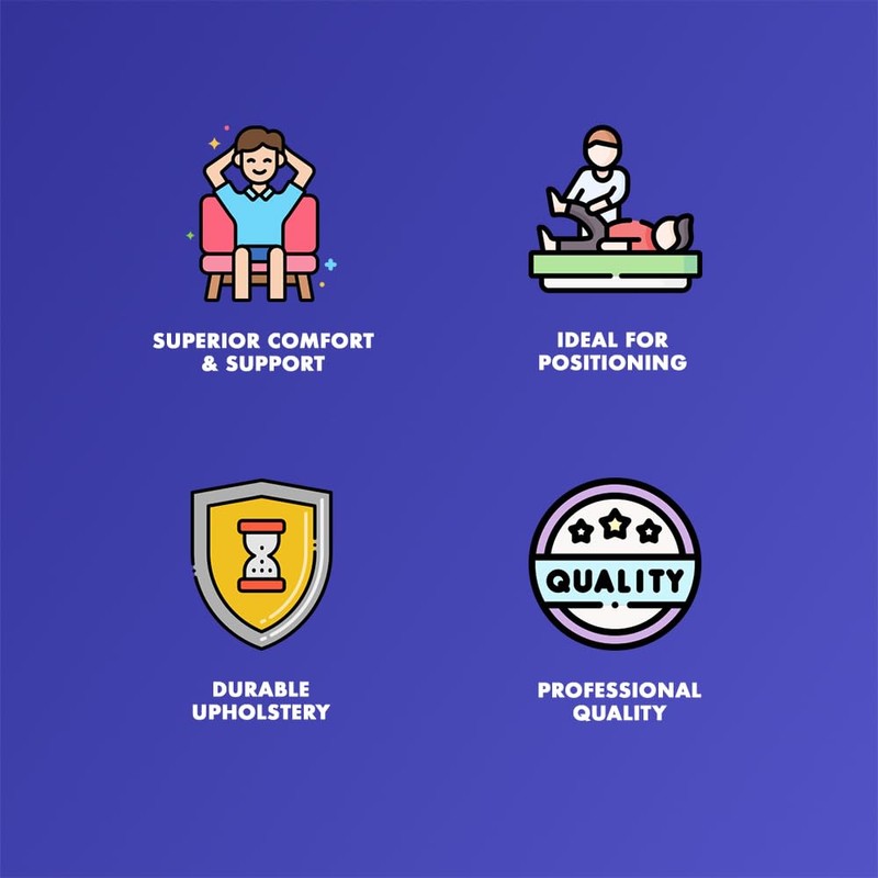 - Firm yet comfortable foam will hold up to heavy duty clinic use.