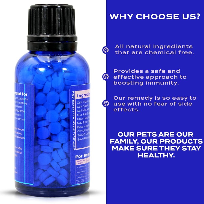 - Nutrient-Dense Formula for Complete Support: Featuring a blend of essential minerals like calcium fluor, calcium phosphate, and silicea 6x, along with natural plant extracts, this formula provides a rich source of nutrition. Designed to supplement a balanced diet, it supports overall health and vitality in reptiles.