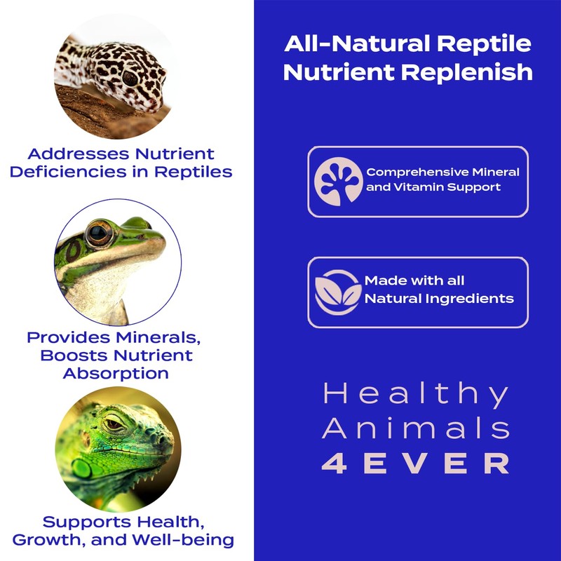 - Addresses Common Nutrient Deficiencies: Our Reptile Nutrient Replenish formula is crafted to help manage and prevent nutrient deficiencies by delivering essential minerals that support nutrient absorption. Perfect for reptiles needing an extra nutritional boost, it ensures your pet gets the vital nutrients it needs to thrive.