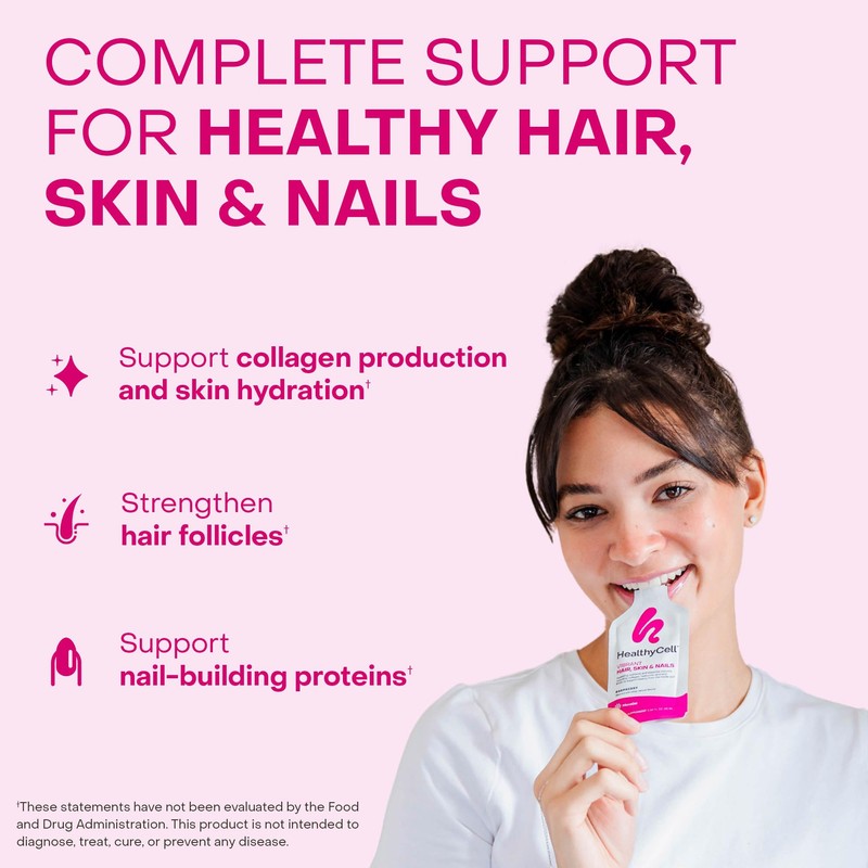 - A Daily Glow-Boosting Supplement: Be radiant from the inside out with HealthyCell Vibrant Hair, Skin & Nails. Hydrating nutrients, nourishing plant extracts, essential vitamins, and collagen building blocks help to provide a noticeable beauty boost. Everything you need to support healthy hair, skin and nails in a juicy, raspberry-flavored MicroGel.