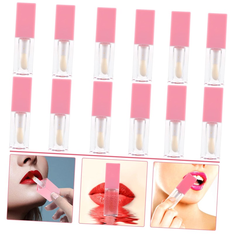 Healvian 12pcs Lip Gloss Tube Empty Tube Square Container Lip Tint Bulk Lip Gloss Lip Gloss Tubes Bulk DIY Lip Gloss Tube Lip Gloss Container Refillable Lip Gloss Bottle Empty Abs Pink