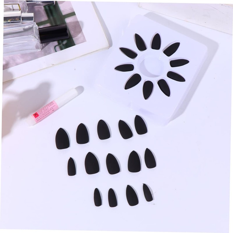 Healvian 24pcs Fake Nail Stickers Fake Nails Nail Art Decals Full Cover French Tips Full Cover Nails Nail Gel Matte Coffin Nails Women Nail Decor Fake Fingernails Nail Decoration Black
