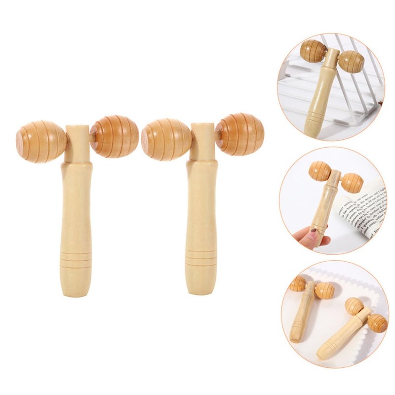 Healvian 2pcs Deep Tissue Massage Roller Wooden Handle Manual Face Neck Relaxation Tool for Home and Travel Use Lightweight and